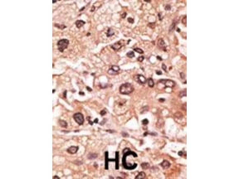 This MAGEF1 antibody is generated from rabbits immunized with a KLH conjugated synthetic peptide between 274-303 amino acids from the C-terminal region of human MAGEF1.