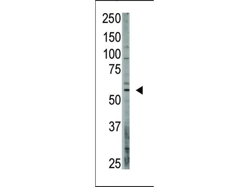 This OASIS antibody is generated from rabbits immunized with a KLH conjugated synthetic peptide between 491-519 amino acids from the C-terminal region of human OASIS.