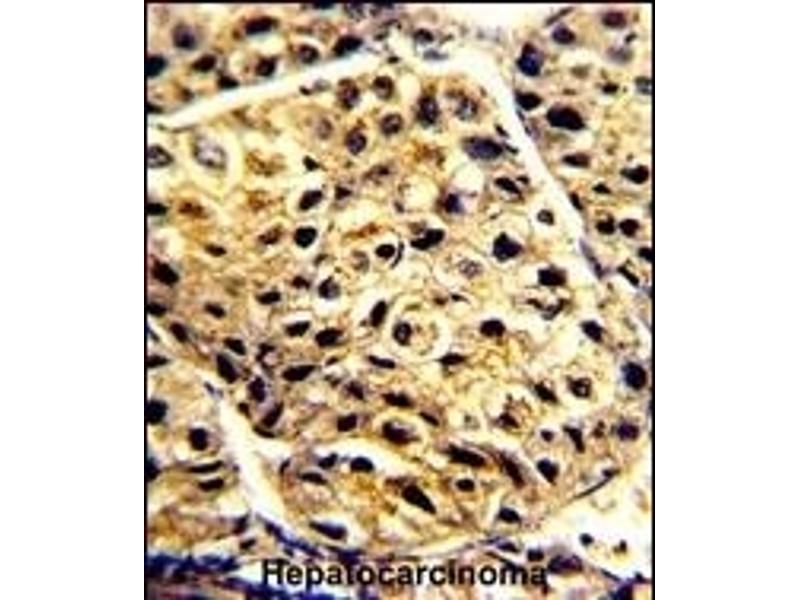 This AADAC antibody is generated from rabbits immunized with a KLH conjugated synthetic peptide between 273-300 amino acids from the C-terminal region of human AADAC.