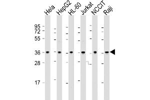 This OGG1 antibody is generated from rabbits immunized with a KLH conjugated synthetic peptide between 318-345 amino acids from the C-terminal region of human OGG1.