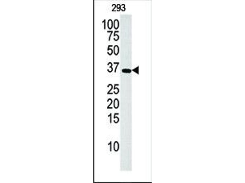 Der Kaninchen Polyklonal anti-Deoxyguanosine Kinase Antikörper (Klon RB5277) (ABIN391122) detektiert spezifisch Deoxyguanosine Kinase in WB.