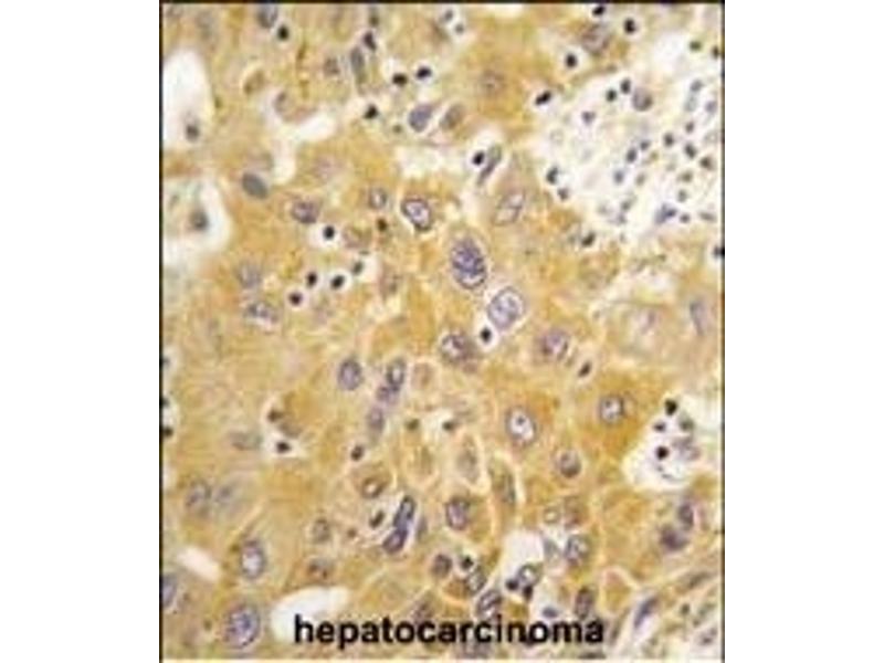 This CAMK1D (CAMK1 delta) antibody is generated from rabbits immunized with a KLH conjugated synthetic peptide between 302-333 amino acids from the C-terminal region of human CAMK1D (CAMK1 delta).