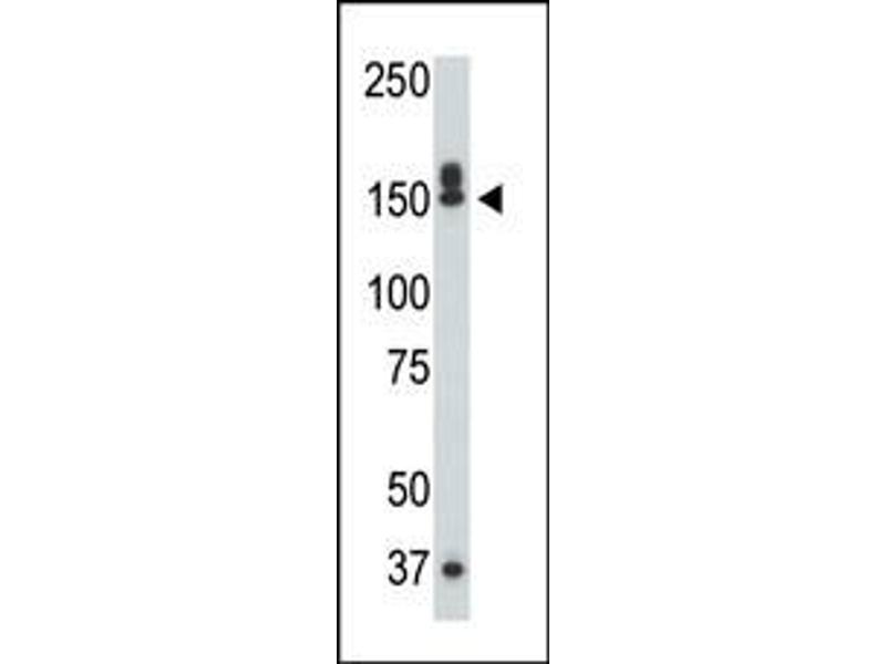 This DAPK1 antibody is generated from rabbits immunized with a KLH conjugated synthetic peptide between 1360-1389 amino acids from the C-terminal region of human DAPK1.