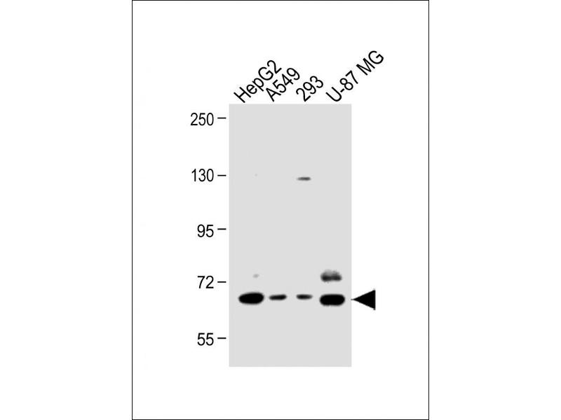 This SPHK2 antibody is generated from rabbits immunized with a KLH conjugated synthetic peptide between 590-620 amino acids from the C-terminal region of human SPHK2.
