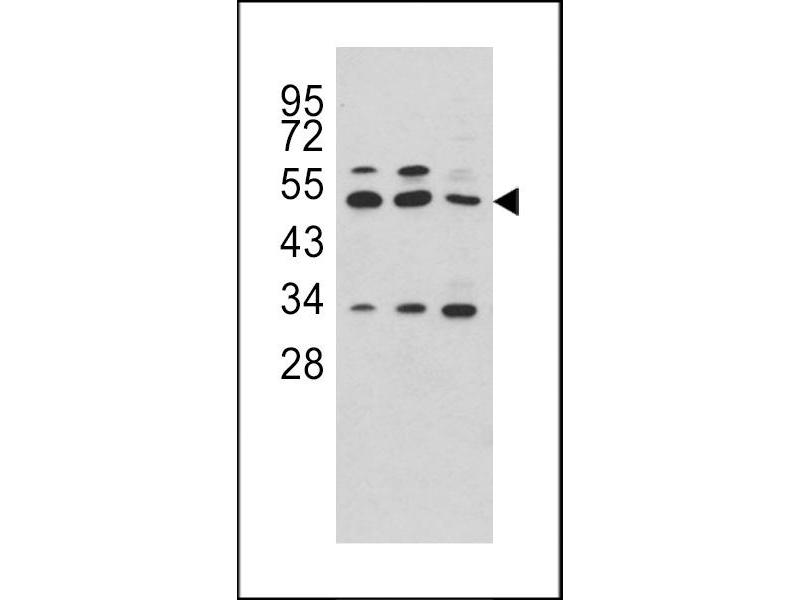 This CPA4 antibody is generated from rabbits immunized with a KLH conjugated synthetic peptide between 305-336 amino acids from the C-terminal region of human CPA4.