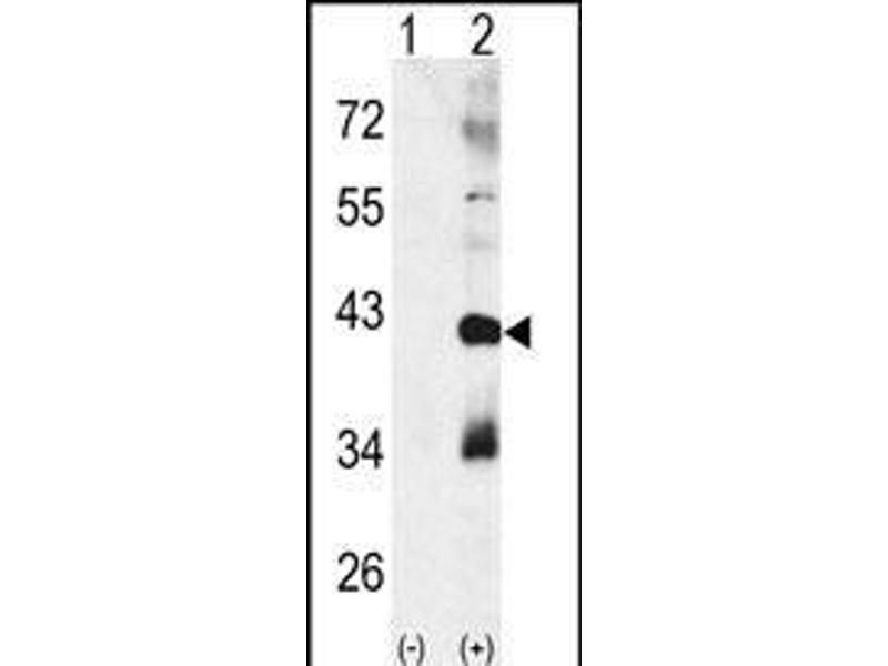 Der Kaninchen Polyklonal anti-MAPK11 Antikörper (Klon RB6828) (ABIN391731) detektiert spezifisch MAPK11 in WB.