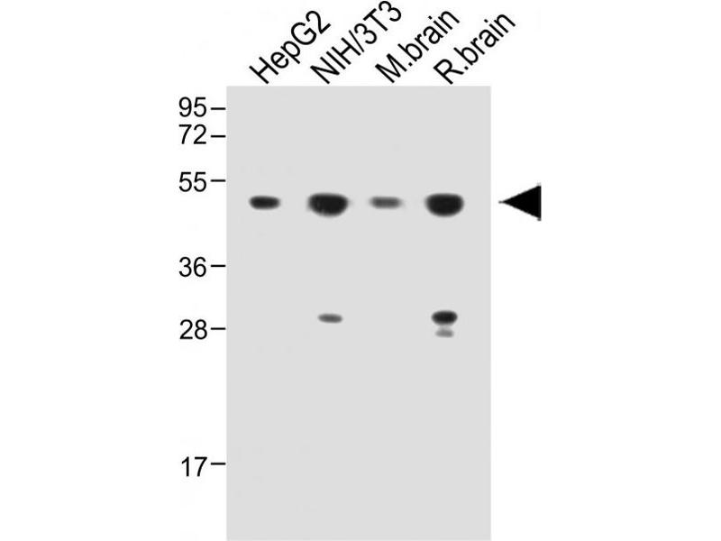 This HARS antibody is generated from rabbits immunized with a KLH conjugated synthetic peptide between 49-78 amino acids from the N-terminal region of human HARS.