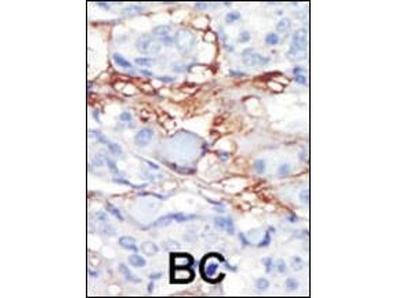 Der Kaninchen Polyklonal anti-PDGFRL Antikörper (Klon RB2001) (ABIN392037) detektiert spezifisch PDGFRL in WB und IHC (p).