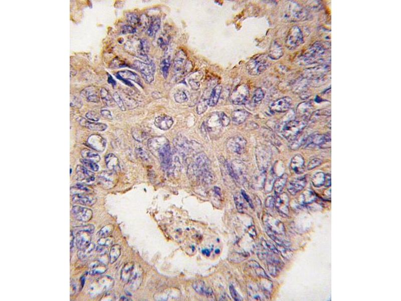 This TRAF2 antibody is generated from rabbits immunized with a KLH conjugated synthetic peptide between 343-372 amino acids from the C-terminal region of human TRAF2.