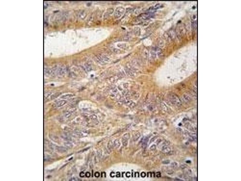This AIK antibody is generated from rabbits immunized with a KLH conjugated synthetic peptide between 90-120 amino acids from the N-terminal region of human AIK.