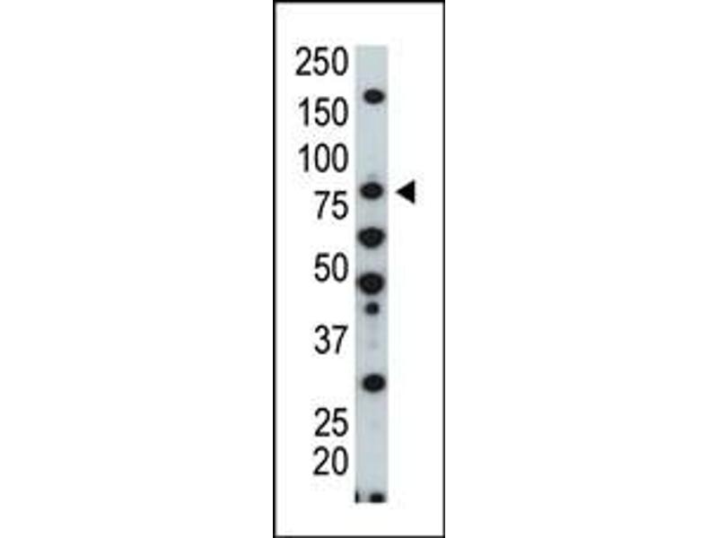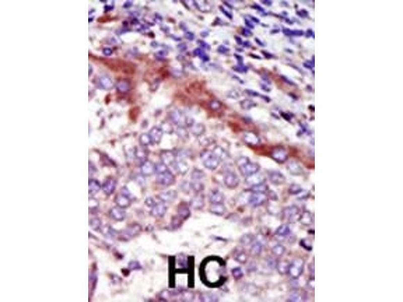 This HUNK antibody is generated from rabbits immunized with a KLH conjugated synthetic peptide between 659-690 amino acids from the C-terminal region of human HUNK.