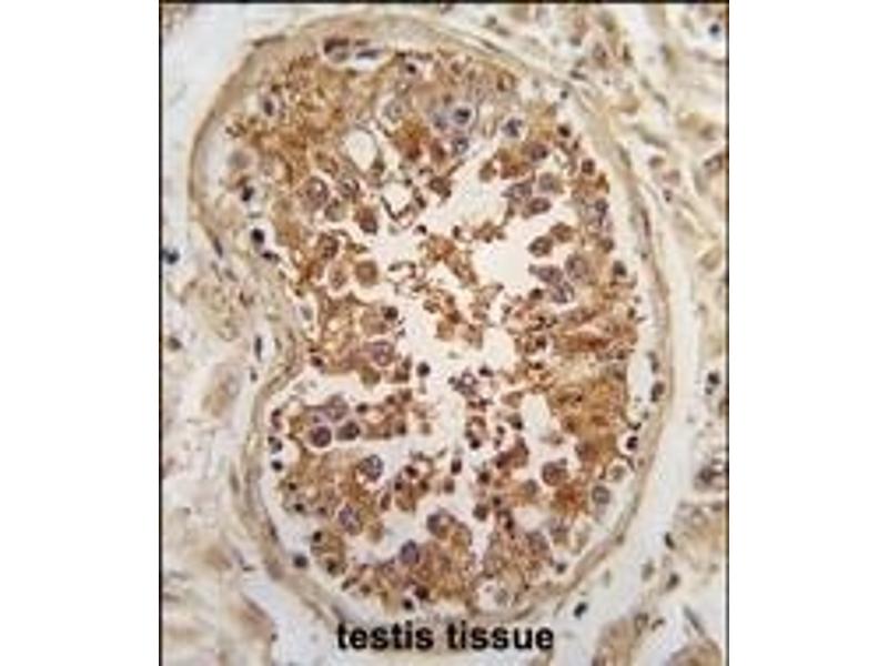This ULK3 antibody is generated from rabbits immunized with a KLH conjugated synthetic peptide between 14-43 amino acids from the N-terminal region of human ULK3.