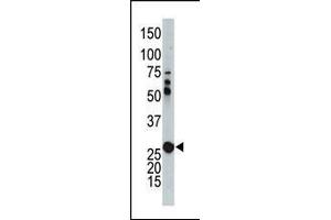 This AK2 antibody is generated from rabbits immunized with a KLH conjugated synthetic peptide between 1-30 amino acids from the N-terminal region of human AK2.