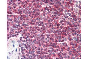 Usage: Immunohistochemistry: This antibody was validated for use in immunohistochemistry on a panel of 21 formalin-fixed, paraffin-embedded (FFPE) human tissues after heat induced antigen retrieval in pH 6.0 citrate buffer. After incubation with the primary antibody, slides were incubated with biotinylated secondary antibody, followed by alkaline phosphatase-streptavidin and chromogen. The stained slides were evaluated by a pathologist to confirm staining specificity. The optimal working concentration for this antibody was determined to be 10 μg/mL. The applications listed have been tested for the unconjugated form of this product. Other forms have not been tested. -