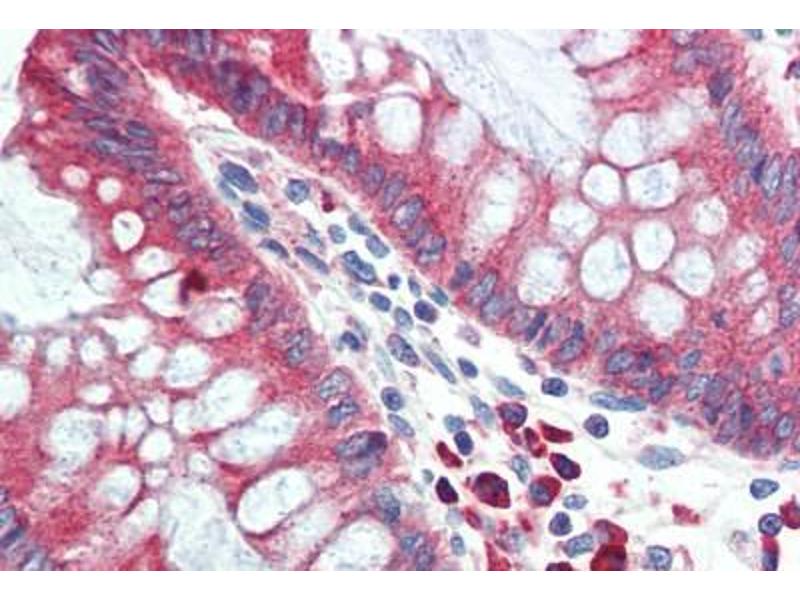 Usage: Immunohistochemistry: This antibody was validated for use in immunohistochemistry on a panel of 21 formalin-fixed, paraffin-embedded (FFPE) human tissues after heat induced antigen retrieval in pH 6.0 citrate buffer. After incubation with the primary antibody, slides were incubated with biotinylated secondary antibody, followed by alkaline phosphatase-streptavidin and chromogen. The stained slides were evaluated by a pathologist to confirm staining specificity. The optimal working concentration for this antibody was determined to be 5 μg/mL. -