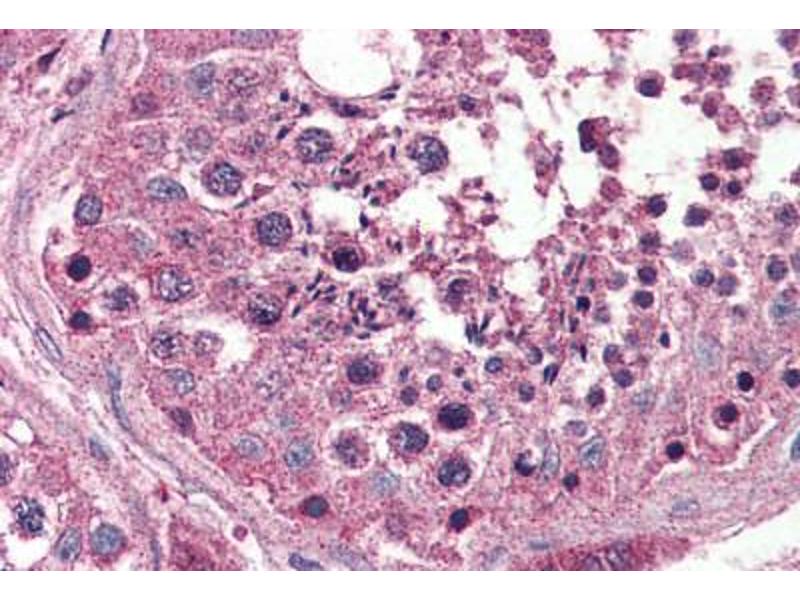 Usage: Immunohistochemistry: This antibody was validated for use in immunohistochemistry on a panel of 21 formalin-fixed, paraffin-embedded (FFPE) human tissues after proteinase K antigen retrieval. After incubation with the primary antibody, slides were incubated with biotinylated secondary antibody, followed by alkaline phosphatase-streptavidin and chromogen. The stained slides were evaluated by a pathologist to confirm staining specificity. The optimal working concentration for this antibody was determined to be 5 μg/mL. -