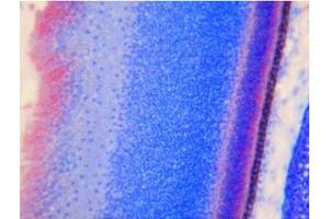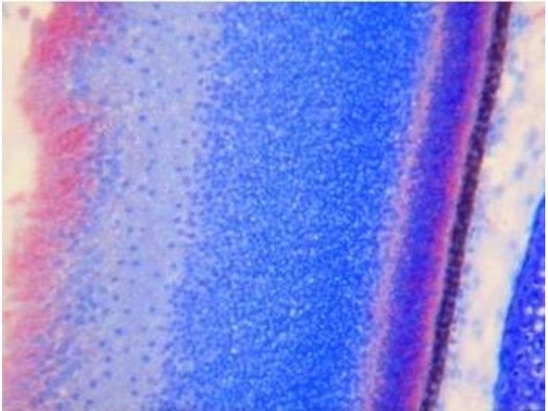 Monoclonal antibody X9A9 (#AM03215PU-N) recognizes Axonin-1 or Contactin-2, an axon-associated cell adhesion molecule that is attached to the neuronal membrane by a GPI-anchor. Tissue Sections: Retina, developing Neurons.