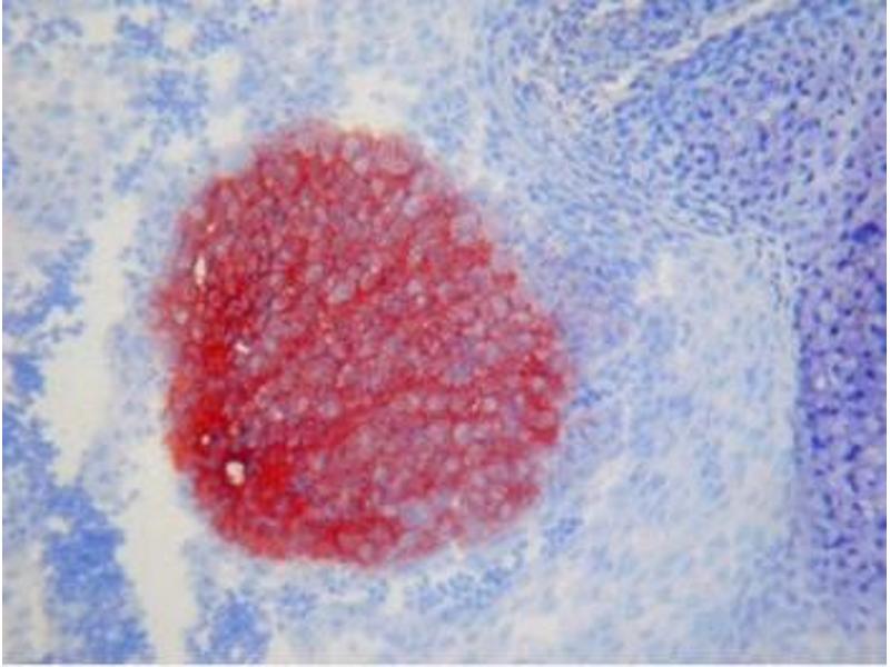 Immunohistochemistry on Frozen Sections: 1 μg/mL (1/400). Recommended Positive Control: Chicken embryo Other applications not tested. Optimal dilutions are dependent on conditions and should be determined by the user.