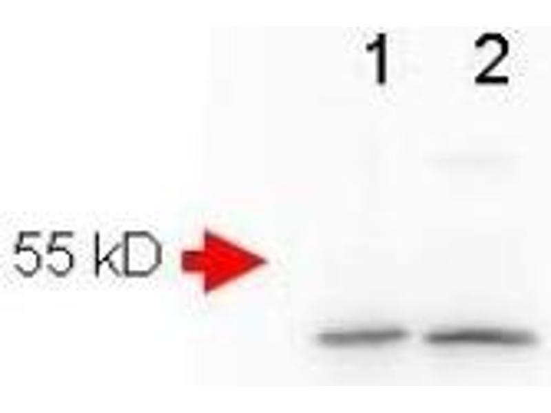 ELISA: 1/10,000. Western blot: 0.5-1.0 μg/mL. A 40-50 kD band consistent with a higher MW precursor isdetected in using whole tissue extracts from mouse brain. Immunofluorescence. Immunohistochemistry: We recommend the use of 4 % PFA for Paraffin embedded tissuesand 10 % Formalin for Frozen tissue for fixation. Other applications not tested. Optimal dilutions are dependent on conditions and should be determined by the user.