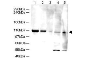 ELG1 (also known as ATP(GTP)-binding protein or Chromosome fragility associated gene 1) is involved in a novel RFC complex that is probably involved in DNA damage and repair by ensuring replication fidelity. This antibody detects a band at about 120 kDa in Hela, A431, Jurkat and HEK193 cells. This corresponds to the band size seen in Kanellis P et al. It remains unclear why the band size detected is much less than the 207 kDa predicted in the protein sequence corresponding to CACC44537.2 (Q96QE3), but as our results correspond to those seen in Kanellis P et al. it is likely that the 120 kDa target is ELG1.Synonyms: ATPase family AAA domain-containing protein 5, C17orf41, Chromosome fragility-associated gene 1 protein, FRAG1
