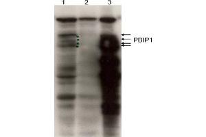Myeloid leukemia factor-1 (MLF1) Interacting Protein (also known as PBIP1, MLF1IP1, KLIP1 or KSHV latent nuclear antigen interacting protein 1) is a novel polo-like kinase 1 (Plk1) substrate. Plk1 phosphorylation of MLF1IP induces ubiquitination and degradation of MLF1IP prior to the metaphase/anaphase transition. Several Plk1-dependent phosphorylation sites have been identified on MLF1IP by mass spectrometry. Mutations of these sites stabilize MLF1IP and inhibit mitotic progression. Subsequent in vitro and in vivo MLF1IP phosphorylation and stability assays have revealed that phosphorylation of Thr78 is critical for triggering Plk1-dependent MLF1IP degradation. Expression of a non-degradable Thr78Ala mutant was sufficient to induce a mitotic block. Timely phosphorylation of MLF1IP on Thr78 by Plk1 is critical for eliminating the MLF1IP-imposed mitotic block prior to anaphase onset. MLF1IP is speculated to be a novel tumor suppressor, whose function is required for proper sisterchromatid separation. Loss of MLF1IP function may result in improper segregation of chromosomes and genomic instability, thus promoting tumorigenesis.Synonyms: CENP-U(50), CENPU, Centromere protein U, ICEN24, Interphase centromere complex protein 24, KLIP1, KSHV latent nuclear antigen-interacting protein 1, MLF1-interacting protein, PBIP, Polo-box-interacting protein 1