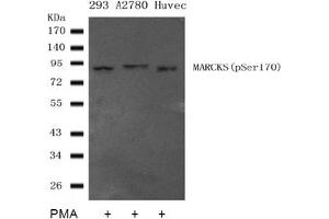 This antibody detects endogenous levels of MARCKS only when phosphorylated at Threonine 170.