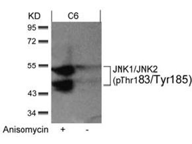 This antibody detects endogenous levels of JNK1/JNK2 only when phosphorylated at Thr183/Tyr185.