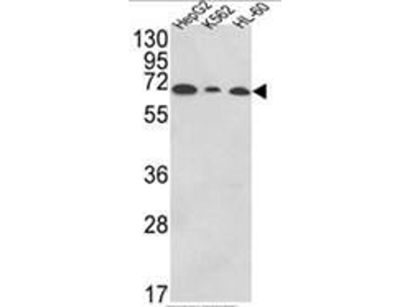 ELISA: 1/1,000. Western blotting: 1/100 - 1/500. Other applications not tested. Optimal dilutions are dependent on conditions and should be determined by the user.