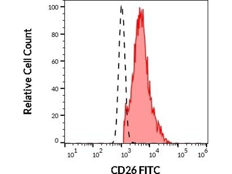 The mouse monoclonal antibody BA5b recognizes an extracellular epitope of CD26, a 110 kDa type II transmembrane glycoprotein, which is a peptidase expressed on mature thymocytes, T cells (especially activated), B cells, NK cells and macrophages.