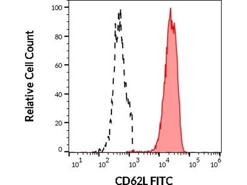 The mouse monoclonal antibody DREG56 recognizes an extracellular epitope of CD62L / L-selectin, a 65-76 kDa cell surface protein, expressed by neutrophils, monocytes, and subsets of T, B, and NK cells, that interacts with specific carbohydrates exposed on activated endothelial cells.