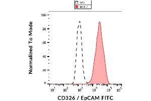 Epithelial cell adhesion molecule,CD326 / EpCAM (also known as ESA, EGP40, EGP-2, KSA1/4, CO17-1A, GA733-2, MOC31, Ber-EP4) is a 40 kDa transmembrane glycoprotein serving as adhesion molecule in the basolateral membranes in a variety of epithelial cells. CD326 mediates calcium-independent homotypic cell-cell adhesions. CD326 over-expression has been detected in many epithelial tumours and is often associated with bad prognosis. It has been used for diagnostics of (pre-) malignancies at early stages.,EPCAM, GA733-2, EGP314, KSA, KS 1/4 antigen, Trop-1, M4S1, DIAR5, MIC18, TROP1