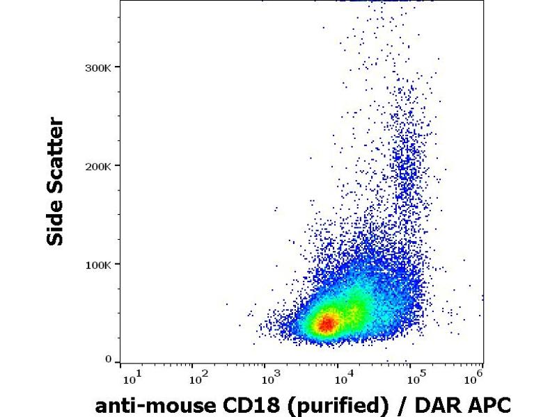 The rat monoclonal antibody M18/2 recognizes an extracellular epitope of CD18 antigen (integrin beta2 subunit, beta2 integrin), a 95 kDa type I transmembrane protein expressed on all leukocytes.