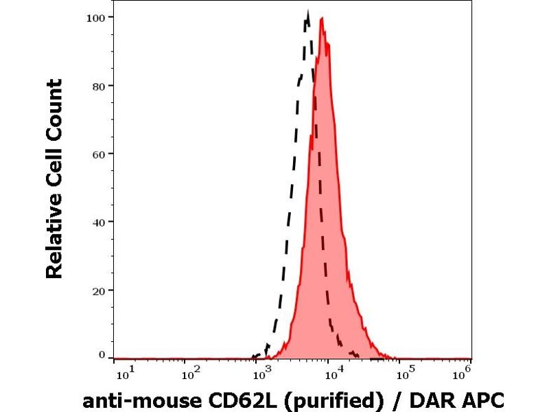 The rat monoclonal antibody MEL-14 reacts with an extracellular epitope of murine CD62L (L-selectin), a 75 kDa single chain type I glycoprotein expressed on most peripheral blood B lymphocytes, T lymphocytes, monocytes and granulocytes, it is also present on a subset of NK cells and certain hematopoietic malignant cells.