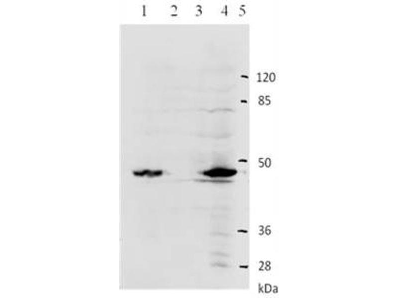 ELISA: 1: 64 000, WB: 1: 1000. Monoclonal antibody working titer has to be established practically for each particular antigen and assay format