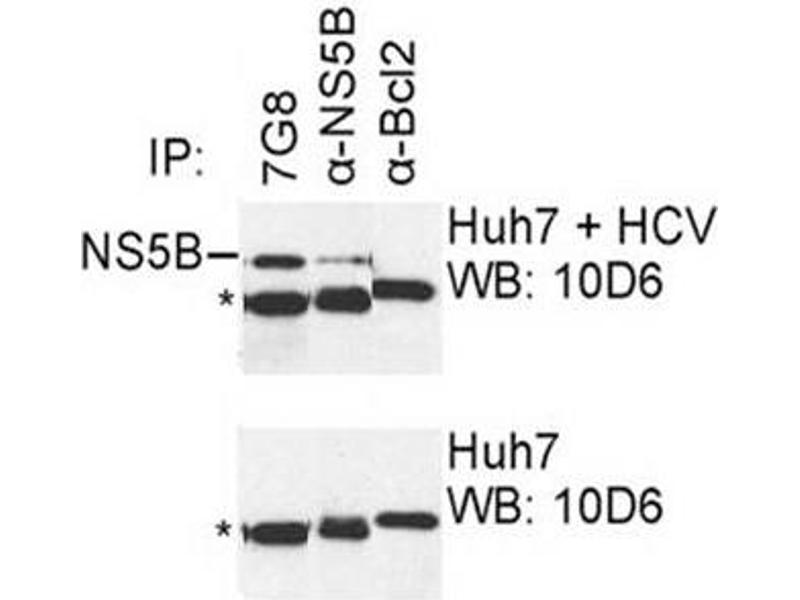 Der Maus Monoklonal anti-HCV 1b NS5B Antikörper (Klon 7G8) (ABIN457557) detektiert spezifisch HCV 1b NS5B in WB, ELISA und IP.