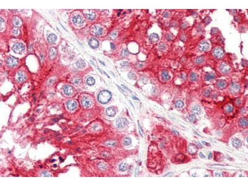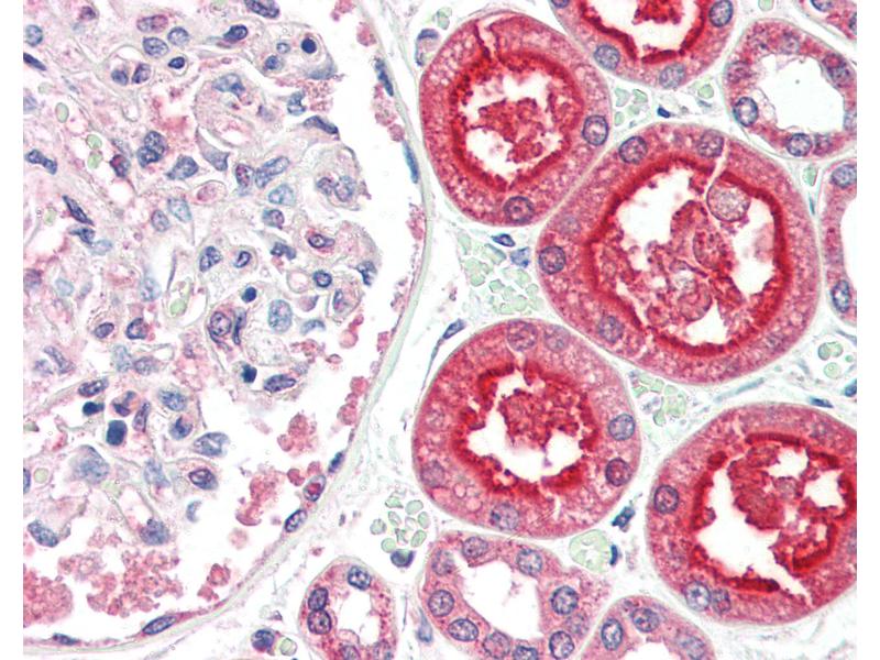 Usage: Immunohistochemistry: This antibody was validated for use in immunohistochemistry on a panel of 21 formalin-fixed, paraffin-embedded (FFPE) human tissues after heat induced antigen retrieval in pH 6.0 citrate buffer. After incubation with the primary antibody, slides were incubated with biotinylated secondary antibody, followed by alkaline phosphatase-streptavidin and chromogen. The stained slides were evaluated by a pathologist to confirm staining specificity. The optimal working concentration for this antibody was determined to be 2.5 μg/mL. Western Blot: ACE2 antibody can be used for the detection of ACE2 by Western blot at 0.5 to 2 μg/mL. A 90 kD band can be detected. Anti-ACE2 has no cross response to ACE1. -