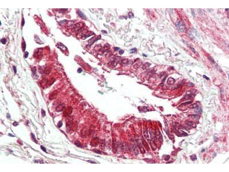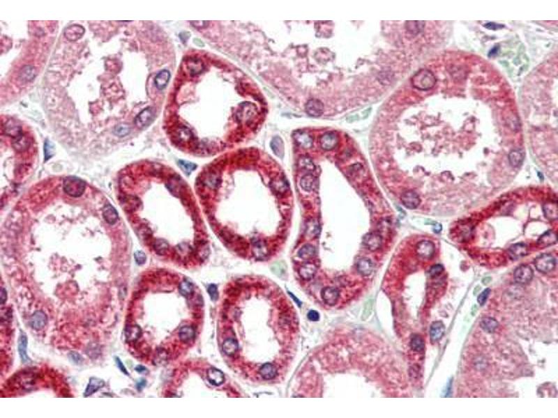 Usage: Immunohistochemistry: This antibody was validated for use in immunohistochemistry on a panel of 21 formalin-fixed, paraffin-embedded (FFPE) human tissues after heat induced antigen retrieval in pH 6.0 citrate buffer. After incubation with the primary antibody, slides were incubated with biotinylated secondary antibody, followed by alkaline phosphatase-streptavidin and chromogen. The stained slides were evaluated by a pathologist to confirm staining specificity. The optimal working concentration for this antibody was determined to be 5 μg/mL. -