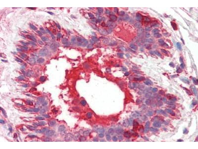 Usage: Immunohistochemistry: This antibody was validated for use in immunohistochemistry on a panel of 21 formalin-fixed, paraffin-embedded (FFPE) human tissues after heat induced antigen retrieval in pH 6.0 citrate buffer. After incubation with the primary antibody, slides were incubated with biotinylated secondary antibody, followed by alkaline phosphatase-streptavidin and chromogen. The stained slides were evaluated by a pathologist to confirm staining specificity. The optimal working concentration for this antibody was determined to be 10 μg/mL. -