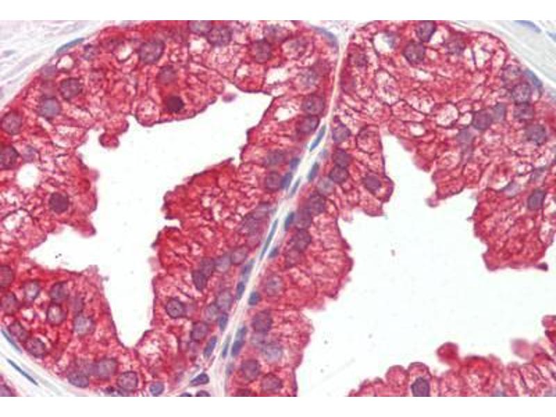 Usage: Immunohistochemistry: This antibody was validated for use in immunohistochemistry on a panel of 21 formalin-fixed, paraffin-embedded (FFPE) human tissues after heat induced antigen retrieval in pH 6.0 citrate buffer. After incubation with the primary antibody, slides were incubated with biotinylated secondary antibody, followed by alkaline phosphatase-streptavidin and chromogen. The stained slides were evaluated by a pathologist to confirm staining specificity. The optimal working concentration for this antibody was determined to be 10 μg/mL. -
