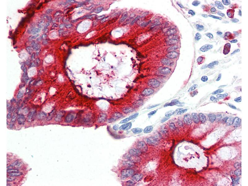 Usage: Immunohistochemistry: This antibody was validated for use in immunohistochemistry on a panel of 21 formalin-fixed, paraffin-embedded (FFPE) human tissues after heat induced antigen retrieval in pH 6.0 citrate buffer. After incubation with the primary antibody, slides were incubated with biotinylated secondary antibody, followed by alkaline phosphatase-streptavidin and chromogen. The stained slides were evaluated by a pathologist to confirm staining specificity. The optimal working concentration for this antibody was determined to be 10 μg/mL. -