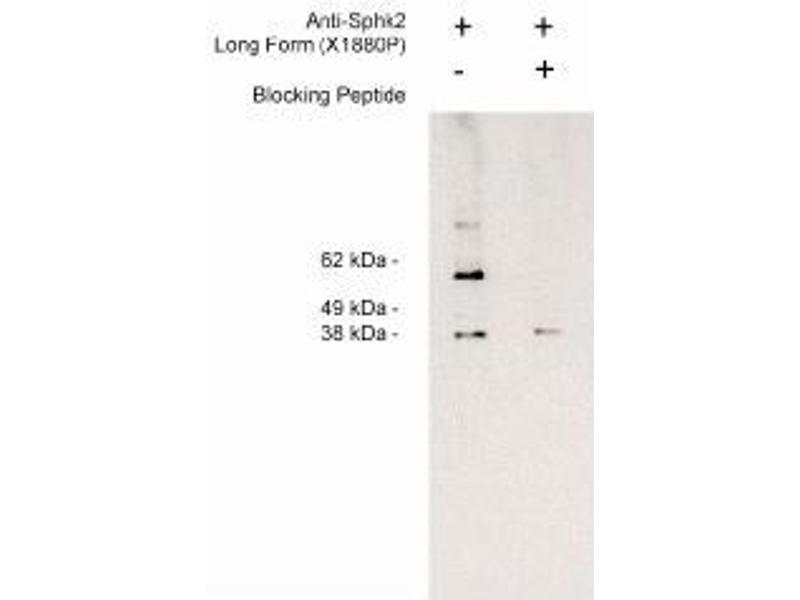 The long form of sphingosine kinase 2 (Sphk2-L) is a species-specific isoform of the Sphk2 enzyme expressed in human but not in mouse. It is an N-terminal extended form of Sphk2, extended by 36 amino acids. It functions as expected, catalyzing the formation of sphingosine 1-phosphate from sphingosine, however it appears to have a decreased ability to inhibit DNA synthesis as compared to Sphk2-S (short form of Sphk2). Under normal cellular conditions, Sphk2-L does not appear to inhibit DNA synthesis, but under serum deprivation, SphK2-L translocates to the nucleus and accumlates. This accumlation may be involved in the cessation of cell proliferation or apoptosis depending on the cell type.Synonyms: SK2, SPHK2