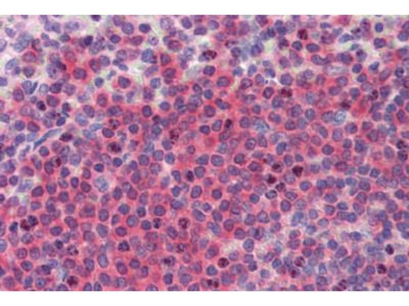 Usage: Immunohistochemistry: This antibody was validated for use in immunohistochemistry on a panel of 21 formalin-fixed, paraffin-embedded (FFPE) human tissues after heat induced antigen retrieval in pH 6.0 citrate buffer. After incubation with the primary antibody, slides were incubated with biotinylated secondary antibody, followed by alkaline phosphatase-streptavidin and chromogen. The stained slides were evaluated by a pathologist to confirm staining specificity. The optimal working concentration for this antibody was determined to be 5 μg/mL. Western Blot: Cell lysates of HeLa(20 μg) were resolved by SDS-PAGE, transferred to NC membrane and probed with anti-human BRCC36 (1:1000). Proteins were visualized using a goat anti-mouse secondary antibody conjugated to HRP and an ECL detection system. -