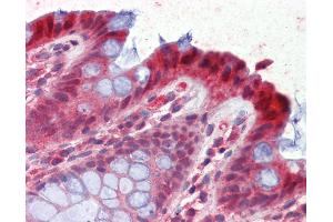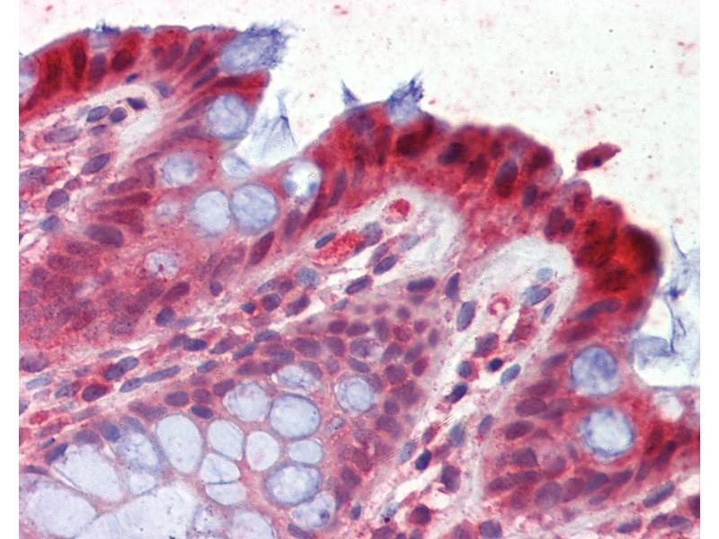 Usage: Immunohistochemistry: This antibody was validated for use in immunohistochemistry on a panel of 21 formalin-fixed, paraffin-embedded (FFPE) human tissues after heat induced antigen retrieval in pH 6.0 citrate buffer. After incubation with the primary antibody, slides were incubated with biotinylated secondary antibody, followed by alkaline phosphatase-streptavidin and chromogen. The stained slides were evaluated by a pathologist to confirm staining specificity. The optimal working concentration for this antibody was determined to be 2.5 μg/mL. -