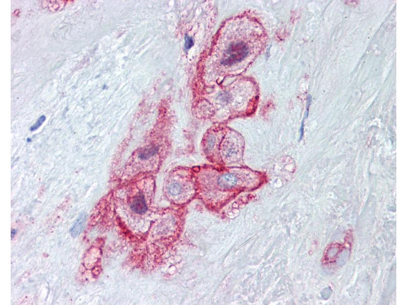Usage: Immunohistochemistry: This antibody was validated for use in immunohistochemistry on a panel of 21 formalin-fixed, paraffin-embedded (FFPE) human tissues after heat induced antigen retrieval in pH 6.0 citrate buffer. After incubation with the primary antibody, slides were incubated with biotinylated secondary antibody, followed by alkaline phosphatase-streptavidin and chromogen. The stained slides were evaluated by a pathologist to confirm staining specificity. The optimal working concentration for this antibody was determined to be 10 μg/mL. -