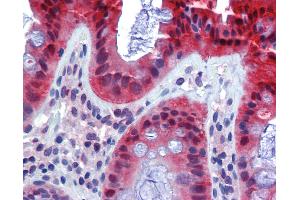 Usage: Immunohistochemistry: This antibody was validated for use in immunohistochemistry on a panel of 21 formalin-fixed, paraffin-embedded (FFPE) human tissues after heat induced antigen retrieval in pH 6.0 citrate buffer. After incubation with the primary antibody, slides were incubated with biotinylated secondary antibody, followed by alkaline phosphatase-streptavidin and chromogen. The stained slides were evaluated by a pathologist to confirm staining specificity. The optimal working concentration for this antibody was determined to be 10 μg/mL. -