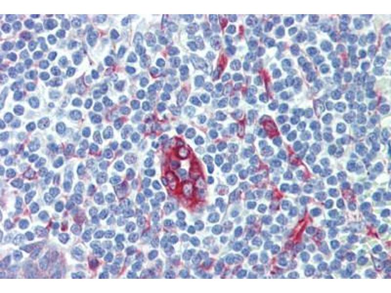 Usage: Immunohistochemistry: This antibody was validated for use in immunohistochemistry on a panel of 21 formalin-fixed, paraffin-embedded (FFPE) human tissues after heat induced antigen retrieval in pH 6.0 citrate buffer. After incubation with the primary antibody, slides were incubated with biotinylated secondary antibody, followed by alkaline phosphatase-streptavidin and chromogen. The stained slides were evaluated by a pathologist to confirm staining specificity. The optimal working concentration for this antibody was determined to be 10 μg/mL. -
