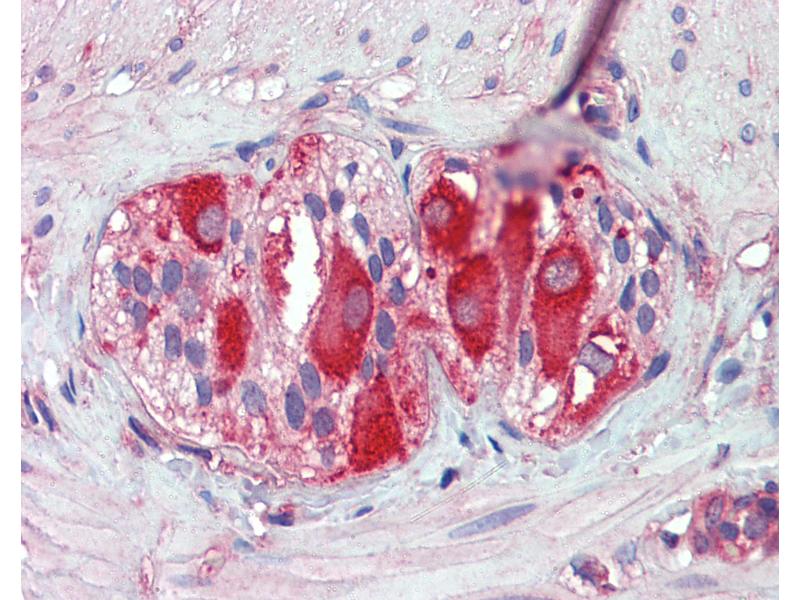 Usage: Immunohistochemistry: This antibody was validated for use in immunohistochemistry on a panel of 21 formalin-fixed, paraffin-embedded (FFPE) human tissues after heat induced antigen retrieval in pH 6.0 citrate buffer. After incubation with the primary antibody, slides were incubated with biotinylated secondary antibody, followed by alkaline phosphatase-streptavidin and chromogen. The stained slides were evaluated by a pathologist to confirm staining specificity. The optimal working concentration for this antibody was determined to be 10 μg/mL. -