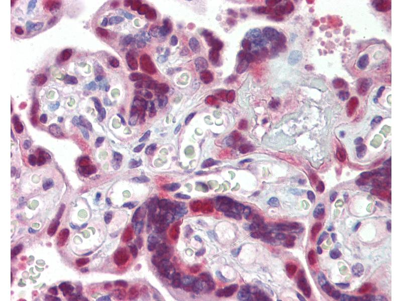 Usage: Immunohistochemistry: This antibody was validated for use in immunohistochemistry on a panel of 21 formalin-fixed, paraffin-embedded (FFPE) human tissues after heat induced antigen retrieval in pH 6.0 citrate buffer. After incubation with the primary antibody, slides were incubated with biotinylated secondary antibody, followed by alkaline phosphatase-streptavidin and chromogen. The stained slides were evaluated by a pathologist to confirm staining specificity. The optimal working concentration for this antibody was determined to be 10 μg/mL -