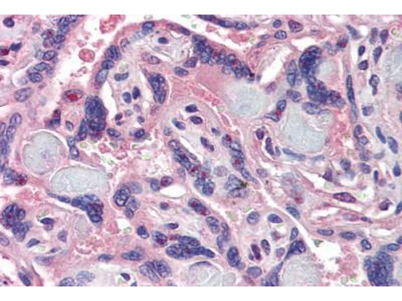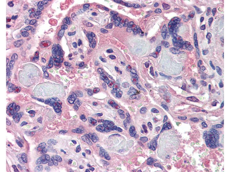 Usage: Immunohistochemistry: This antibody was validated for use in immunohistochemistry on a panel of 21 formalin-fixed, paraffin-embedded (FFPE) human tissues after heat induced antigen retrieval in pH 6.0 citrate buffer. After incubation with the primary antibody, slides were incubated with biotinylated secondary antibody, followed by alkaline phosphatase-streptavidin and chromogen. The stained slides were evaluated by a pathologist to confirm staining specificity. The optimal working concentration for this antibody was determined to be 3.75 μg/mL. -