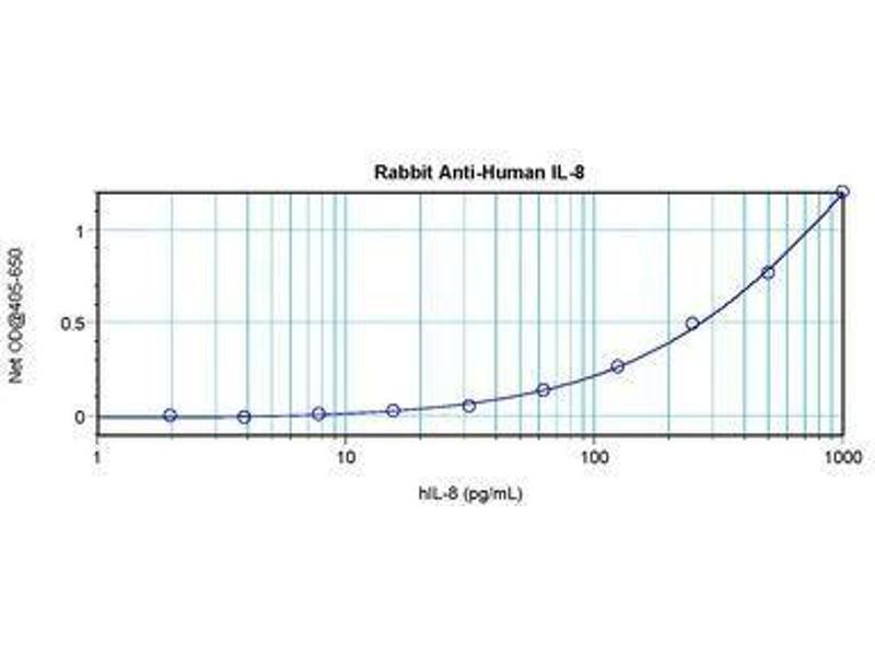 Usage: Immunohistochemistry: This antibody stained formalin-fixed, paraffin-embedded sections of normal human skin. The recommended concentrations are 1 μg/mL for two hours at room temperature or 0.25 μg/mL overnight at 4 °C. An HRP-labeled polymer detection system was used with a non-alcohol soluble AEC chromogen and a proteinase K antigen retrieval. Optimal concentrations and conditions may vary. . Neutralization: To yield one-half maximal inhibition [ND] of the biological activity of Human IL-8 (100 ng/mL), a concentration of 2-3 μg/mL of this antibody is required. ELISA: To detect Human IL-8 by sandwich ELISA (using 100 μL/well antibody solution) a concentration of 0.5-2 μg/mL of this antibody is required. This antigen affinity purified antibody, in conjunction with Biotinylated Anti-Human IL-8 (LS-C104790) as a detection antibody, allows the detection of at least 0.2-0.4 ng/well of recombinant Human IL-8. Western Blot: To detect Human IL-8 by Western Blot analysis this antibody can be used at a concentration of 0.1-0.2 μg/mL. When used in conjunction with compatible secondary reagents, the detection limit for recombinant Human IL-8 is 1.5-3 ng/lane, under either reducing or non-reducing conditions. -